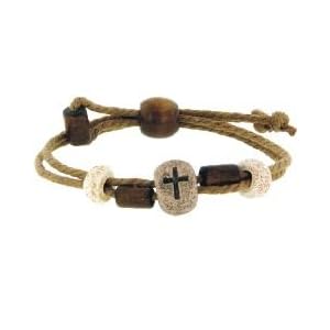 $4.99 Wood & Jute Bead Cross Christian Bracelet