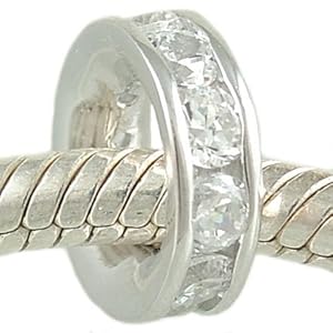 $14.95 April Birthstone Channel Set Clear CZ and 925 Sterling Silver Spacer Bead fits European Charm Bracelet