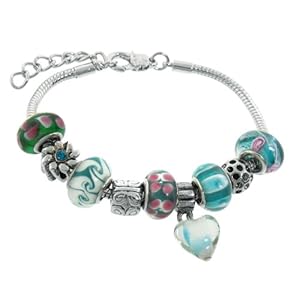 Multi-Colored Murano Style Glass Beads and Charms Bracelet, 7.5" + 1" Extender