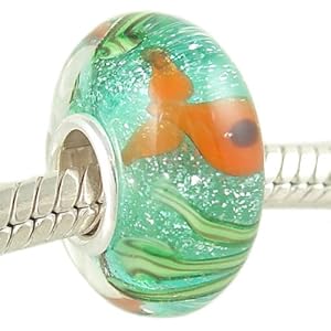 $14.99 Gold Fish Murano Style Glass Bead on Sterling Silver Solid Core fits European Charm Bracelet