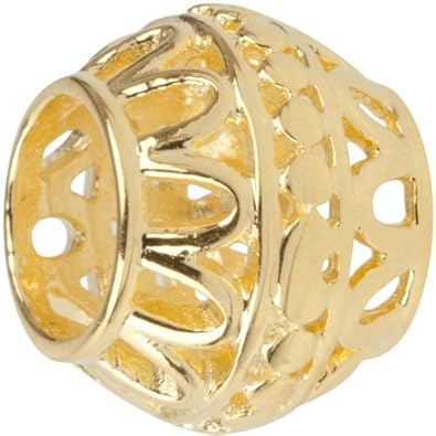 14K Gold Plated Sterling Silver European Bead Charm. A filigree openwork spacer bead of sterling silver with 14 karat gold plating. The massive hole lets in this bead to slide onto your bracelet. This bead fits most 3mm Cable European Charm Bead Bracelets one of theses Ohm, Biagi, and SilveRado. Measures 10 mm x 9 mm.