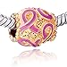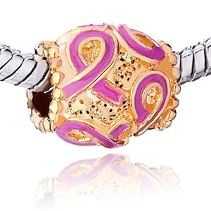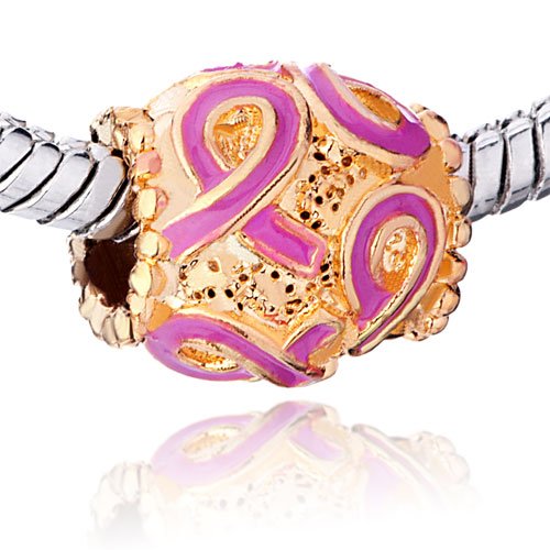 The Golden Oval Pink Ribbon Beads Think Support Breast Cancer Awareness Fits Pandora Chamilia Biagi Charms Beads Bracelet Description