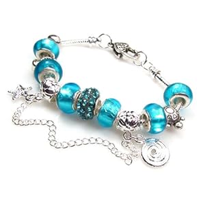 Buy Cheap Aqua Blue Murano-style Lampwork Bead Bracelet with Charms and Aqua Beads and Crystals. Snake Chain Unscrews so Beads CAN Be now today