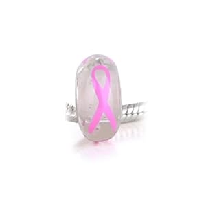 Promotion for Bling Jewelry Glow in the Dark Breast Cancer Awareness Pink Ribbon Murano Glass Bead 925 Sterling Silver Fits Compatible with